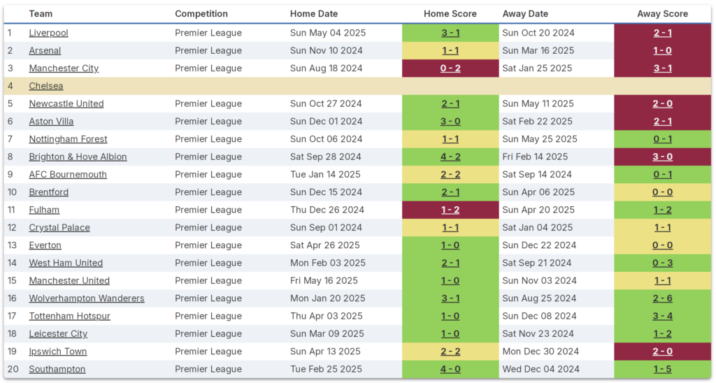 Chelsea won just three out of their 10 matches against the other teams that were part of last season’s top six (see below).