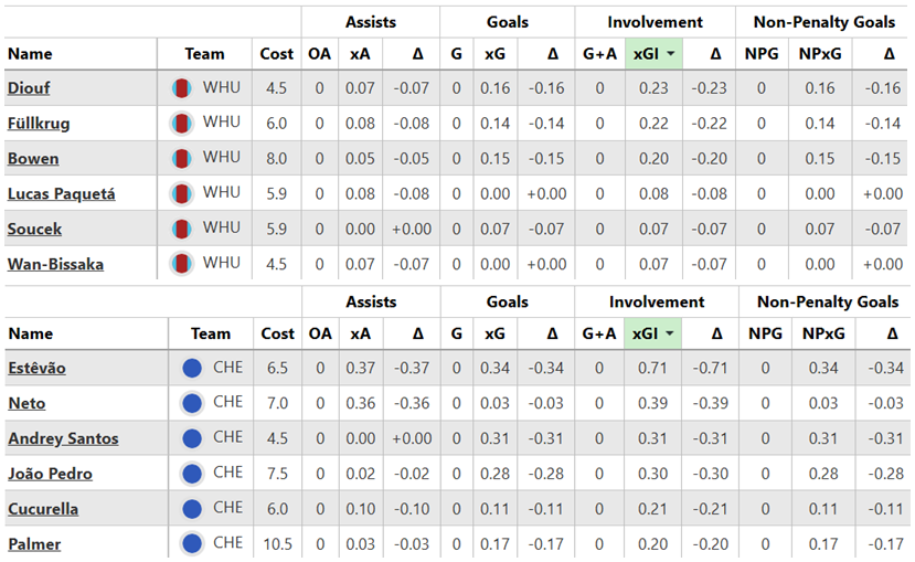 From the opening Gameweek, these are both sides’ best players for expected goal involvement (xGI):