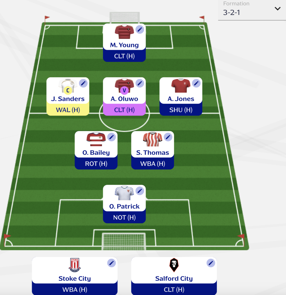 If I opt out of double Salford, Cardiff City’s Nathan Trott (G) is the obvious replacement, facing Plymouth Argyle (H).
