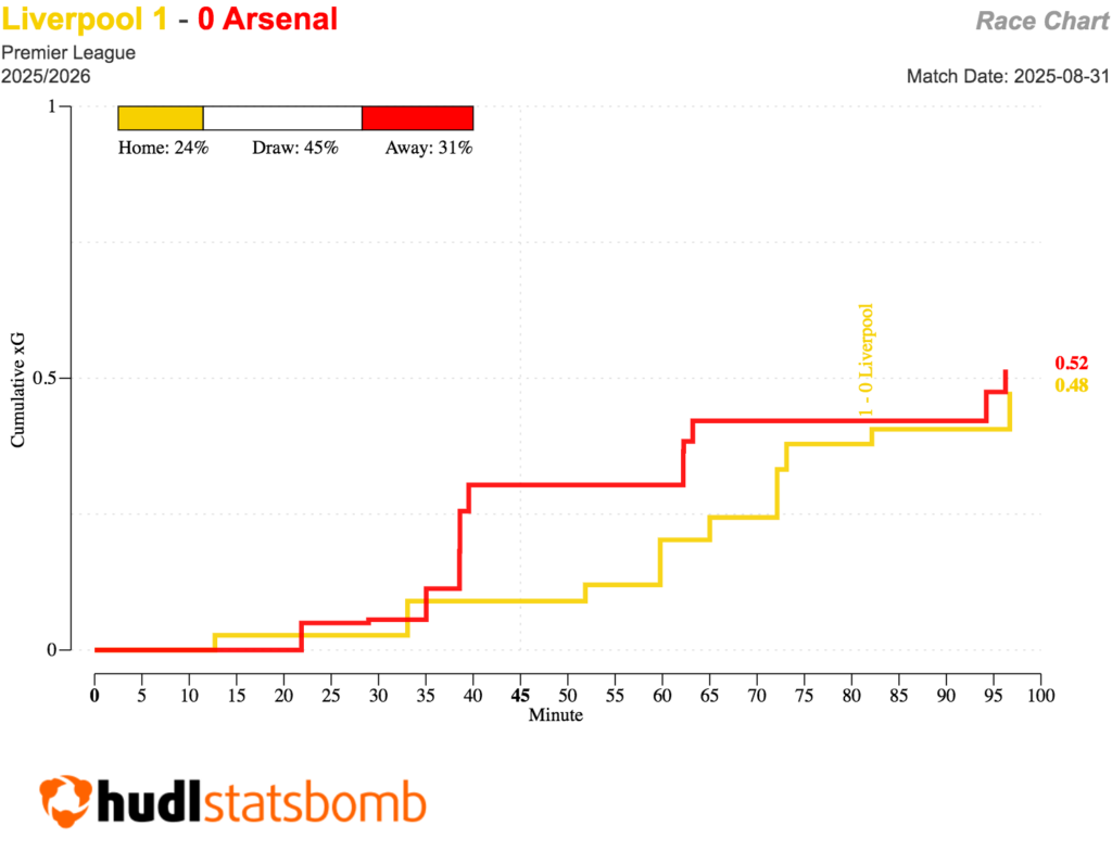 Indeed, Liverpool and Arsenal combined for just 1.0 expected goals (xG):