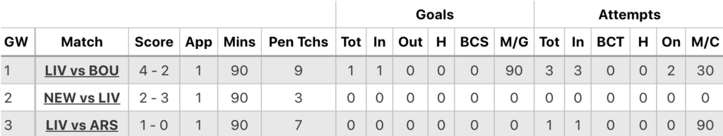 Salah couldn’t find much space down the right flank and was let down by a few heavy touches. The Egyptian has now produced just one shot and 0.05 xG across his last two matches: