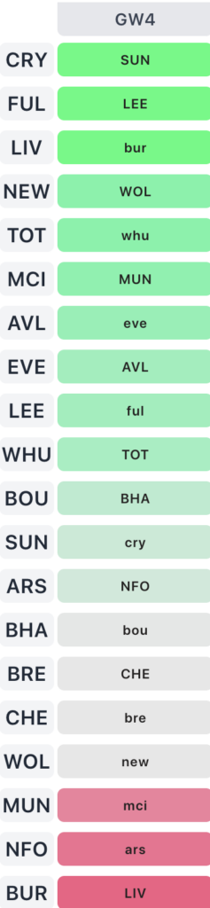 Above: The Gameweek 4 fixtures sorted by difficulty on our Season Ticker.