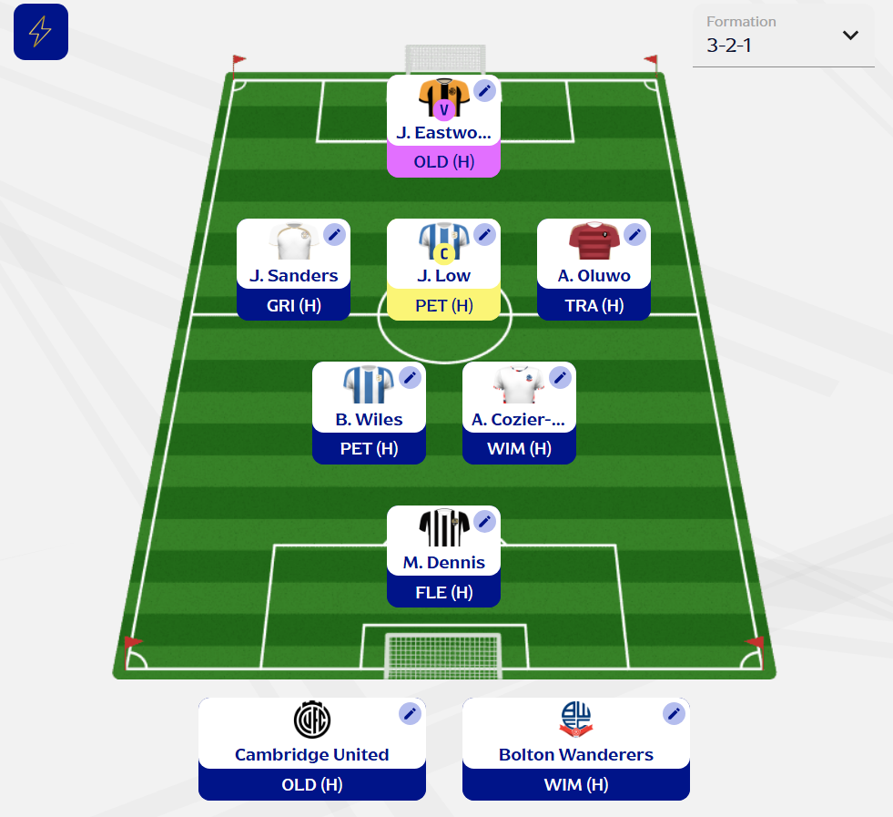 As tempted as I was to select Huddersfield for a second time this season, I think splitting the risk could be a better move. After all, I have already captained one of their defenders and selected one of their midfielders. Team picks are tough in general this week. There aren’t any who I think are bankers, even at home. Home is king in this game, though, or at least that’s how I like to play it. With this in mind, Cambridge and Bolton feel like solid picks. Being completely honest, I don’t trust any of these two sides, but they are the best of a bad bunch.
