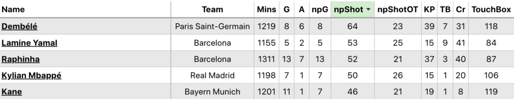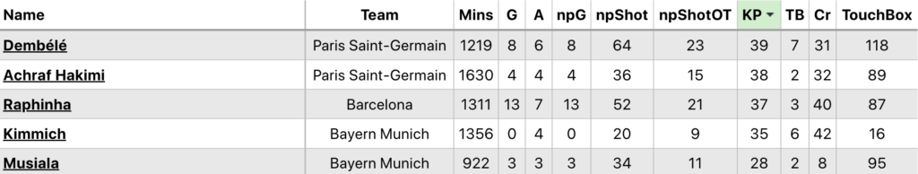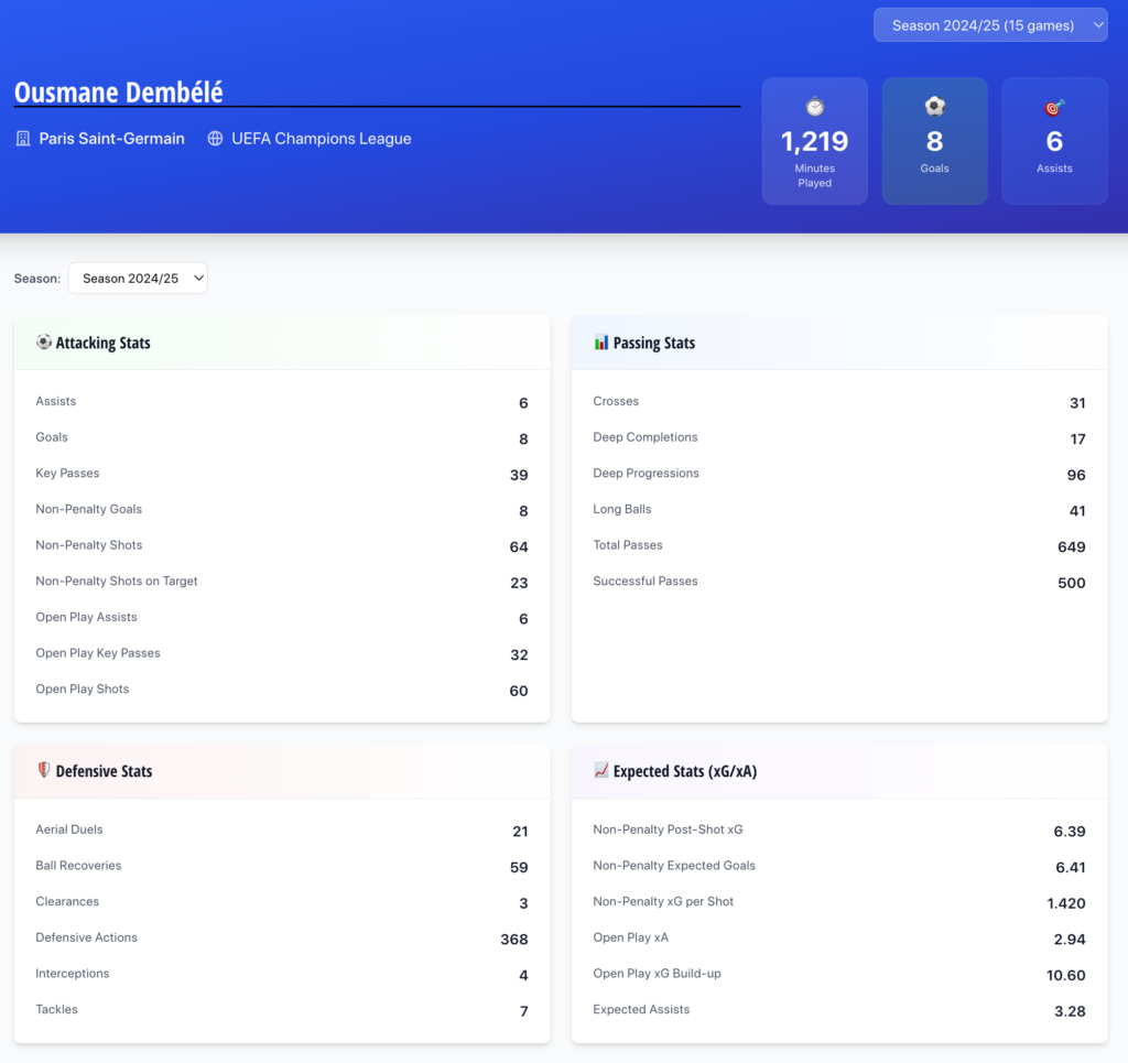 Below is a selection of the player stats available from 2024/25 UCL.
