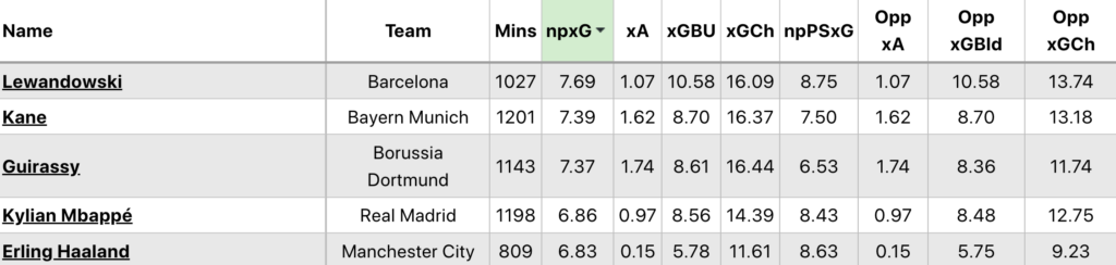 Non-penalty expected goals (npxG):