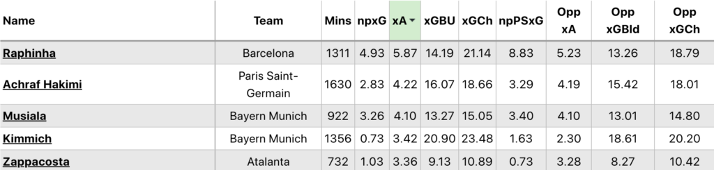 Expected assists (xA):