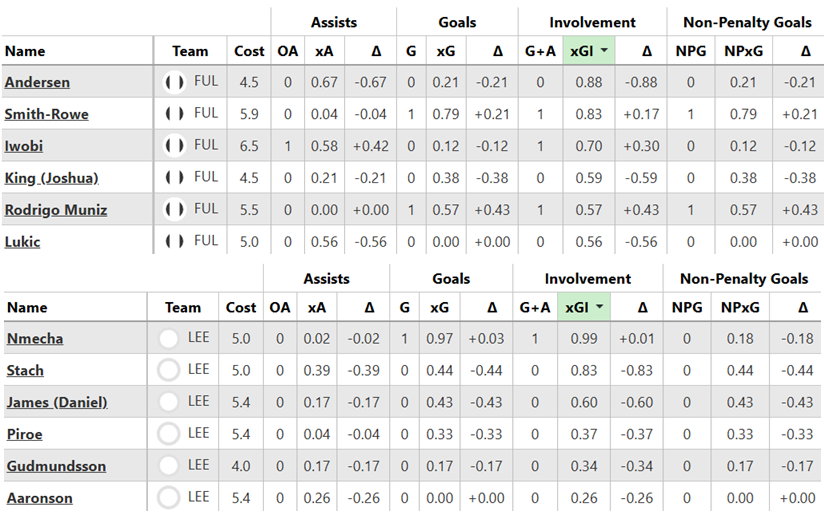 Over their last three Gameweeks, these are both sides’ best players for expected goal involvement (xGI):