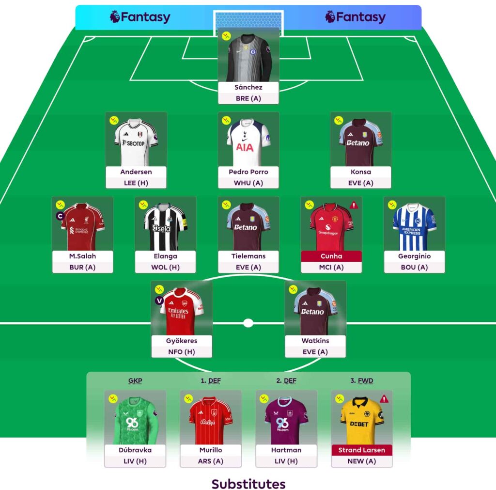 My club, Aston Villa, is a prime example. We’ve been terrible so far, so if I Wildcard, I’d naturally take out Ezri Konsa (£4.5m), Youri Tielemans (£5.9m) and Ollie Watkins (£8.9m).