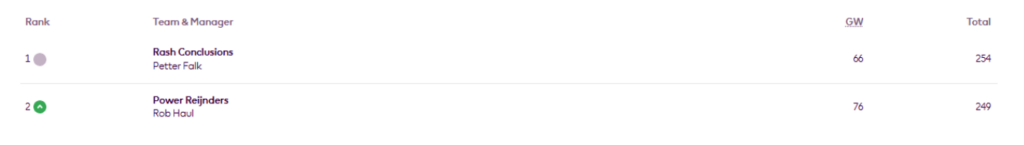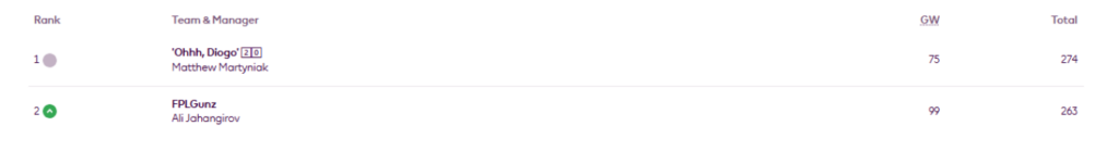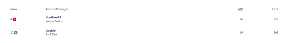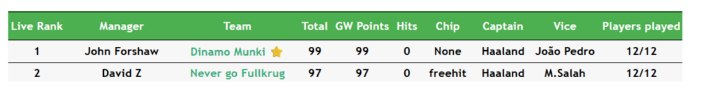 Kostas Tselios and Jaak Dye were the only managers in the top ten of FPL General’s No Salah No Haaland mini-league (league code vnwit5) to still own neither Salah nor Haaland. Kostas captained Joao Pedro and Jaak captained Viktor Gyökeres.The other eight all brought in and captained either Salah or Haaland this week and have been removed.