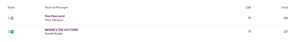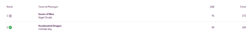 Wendy is also the new leader of our Fantasy Football Scout Members mini-league (which is open to anyone who has an FFS account, the league code being visible in the View League Codes link on the FFS Home Page when signed in).