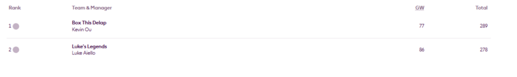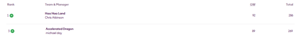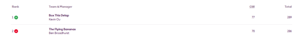 Back to Kevin Ou who has regained the lead in my Opening Day League, having previously led after Gameweek 2.