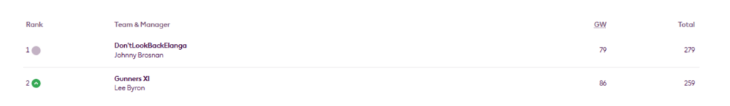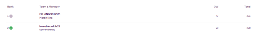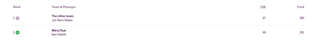 The team listed in second place by FPL (not shown here) is an interloper with no previous seasons history.