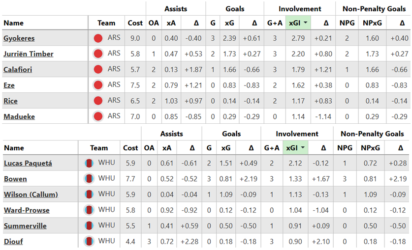 Over their last six Gameweeks, these are both sides’ best players for expected goal involvement (xGI):