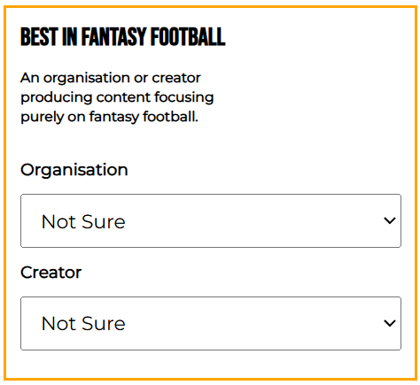 We are on the shortlist for the ‘Best in Fantasy Football – Organisation’ category. It truly is a great honour and we would love to have your vote!
