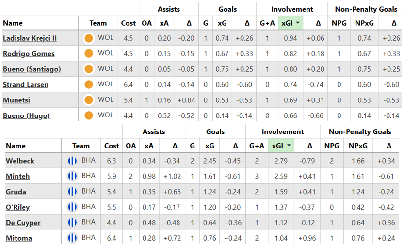 Over their last six Gameweeks, these are both sides’ best players for expected goal involvement (xGI):