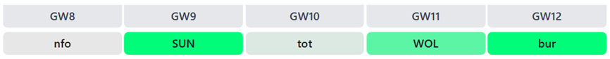 However, fitness management means he’s not in this week’s Brazil squad, plus there’s a European suspension sat between Gameweeks 8 and 9. Therefore the 24-year-old ‘should’ start all of Chelsea’s nice-looking fixtures.