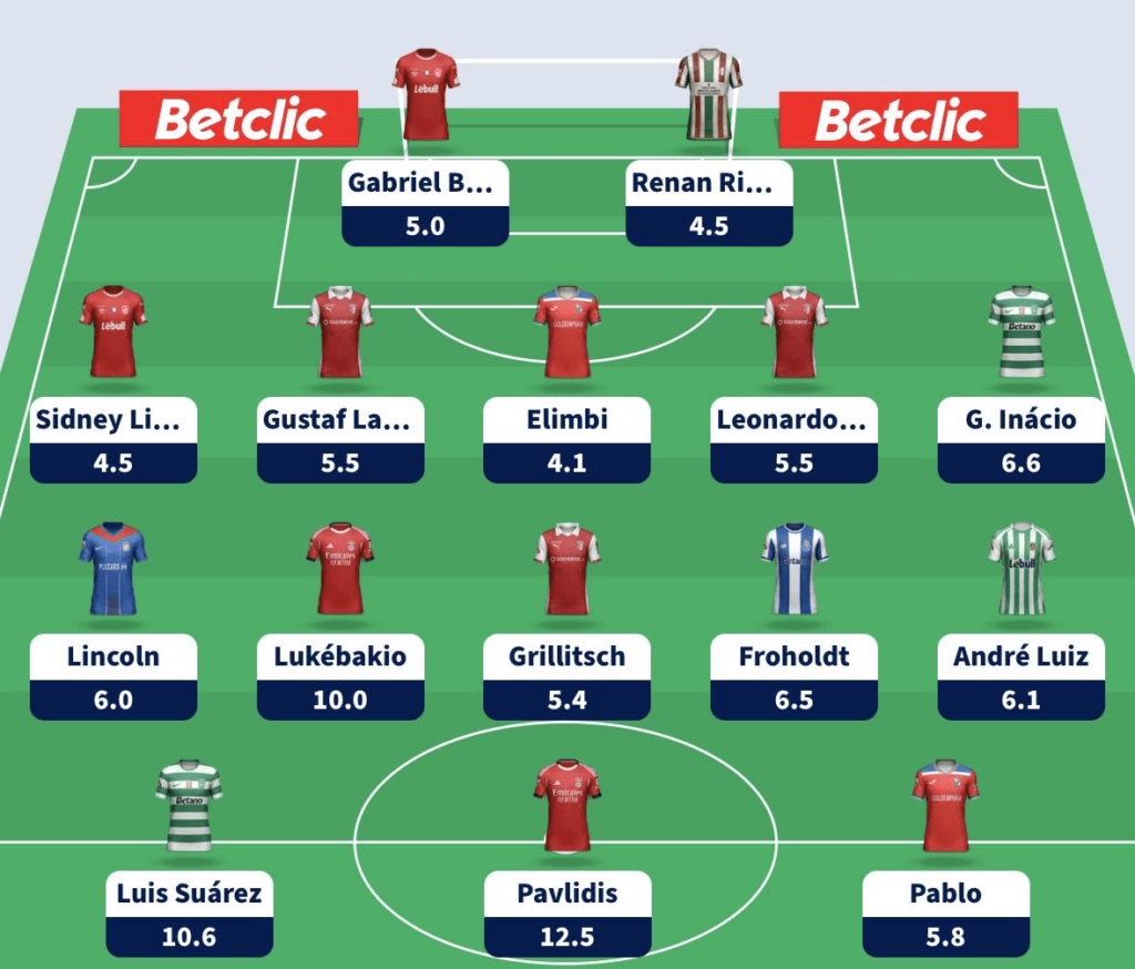 Starting with the goalkeepers. Gabriel Batista (€5.0M) plays at home against the weakest attack in the league. He has already saved a penalty and holds one of the best averages among keepers. Renan (€4.5M) is another strong pick. He also plays at home, facing Rio Ave in what could be a low-scoring game given both sides’ defensive focus.