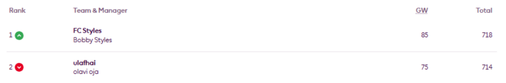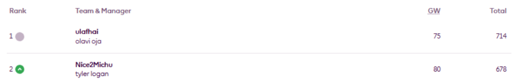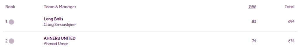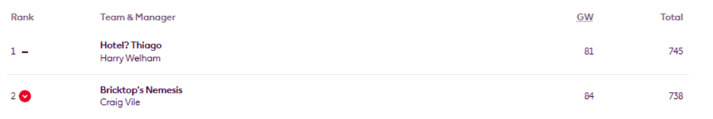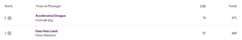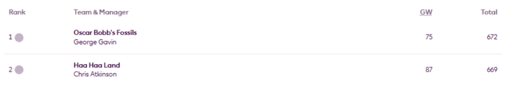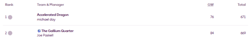 Harry Welham enters as the leader of our Fantasy Football Scout mini-league (code ql9e6k) and is ranked 75th throughout the world.