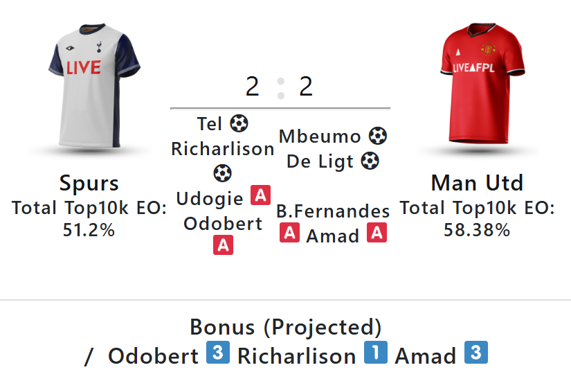 | Tottenham Hotspur | 2 – 2 | Manchester United |