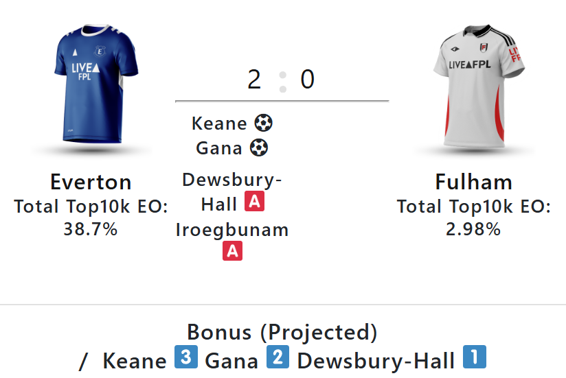 GAMEWEEK 11: SATURDAY’S GOALS, ASSISTS AND PROJECTED BONUS POINTS
