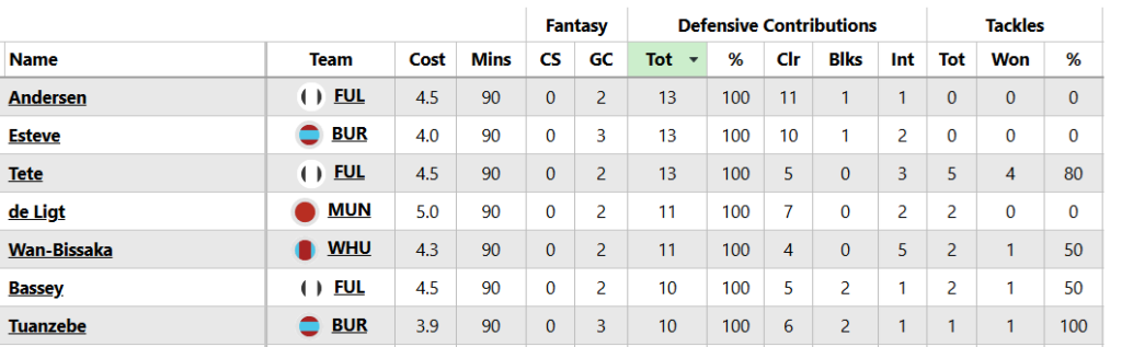 And, new for 2025/26, we’ll also round up Saturday’s defensive contribution (DC/DefCon) points.