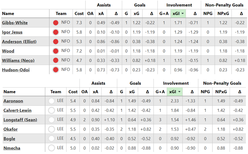 Over their last six Gameweeks, these are both sides’ best players for expected goal involvement (xGI):
