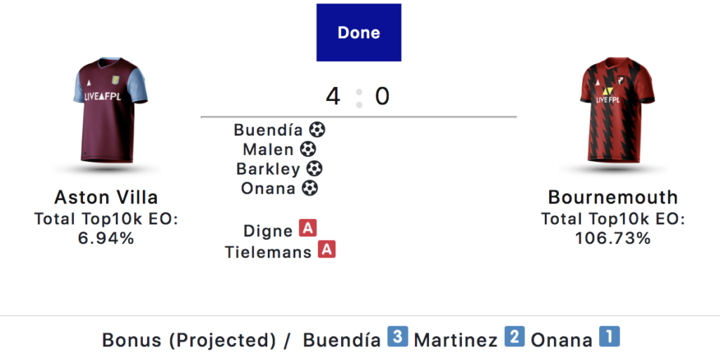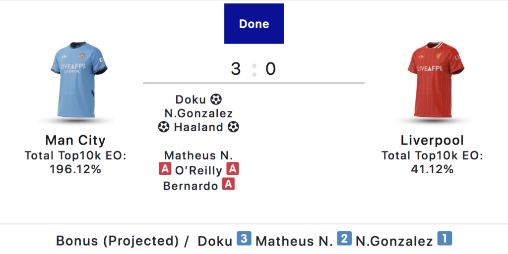 GAMEWEEK 11: SUNDAY’S GOALS, ASSISTS AND PROJECTED BONUS POINTS