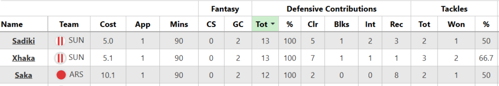 Excellent summer signings like Nordi Mukiele (£4.2m) have complemented Championship winners Trai Hume (£4.5m) and Dan Ballard (£4.6m), who have more than made the step up. The graft and nous of Noah Sadiki (£5.0m) and Granit Xhaka (£5.1m) in midfield add a further layer of protection.