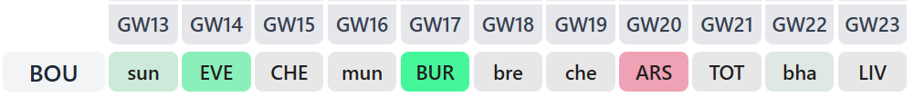 | Good time to ditch Chelsea: On the flip side, Chelsea will by Gameweek 13 have moved past their match against newly-promoted Burnley, and instead sit second-bottom of the Fixture Ticker through to Gameweek 20. In that time, the Blues, for whom rotation in their bloated squad may also become an increasingly prevalent issue as the schedule becomes even more congested across all competitions, face Arsenal (h) immediately as well as all of Bournemouth (h+a), Newcastle (a), Villa (h) and Man City (a). Even the good fixture, at Leeds (a) is the middle match in a Sunday-Wednesday-Saturday Premier League run, so it’s a good bet that Enzo Maresca will rest a few bodies at Elland Road. | Closer to the AFCON transfer top-up: To help deal with the impact of players leaving for the Africa Cup of Nations (AFCON), which runs from FPL Gameweek 17-22, every squad will have their tally of free transfers fully stocked to the maximum of five in Gameweek 16 – regardless of what you’ve accumulated by that point on your own accord. Given only two Gameweeks come between that point and Gameweek 13, you may feel as if you’re not maximising the use of your Wildcard given you could make as many as five more changes for free shortly afterwards. |