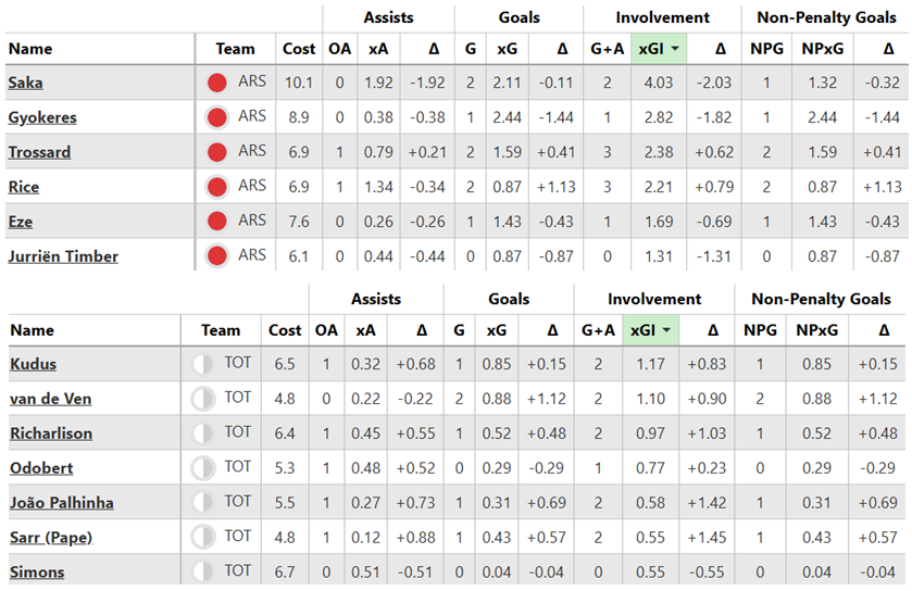 Over their last six Gameweeks, these are both sides’ best players for expected goal involvement (xGI):