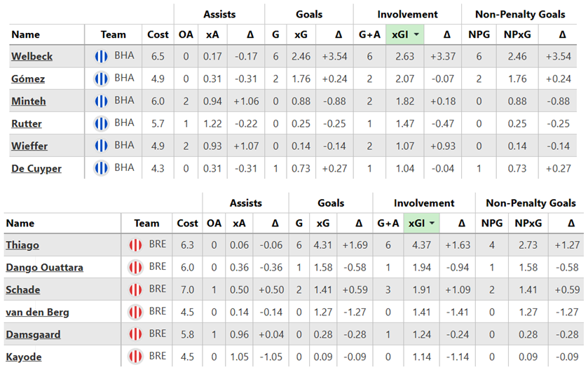 Over their last six Gameweeks, these are both sides’ best players for expected goal involvement (xGI):