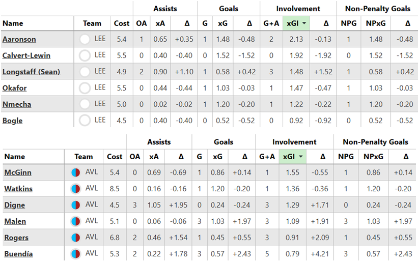 Over their last six Gameweeks, these are both sides’ best players for expected goal involvement (xGI):