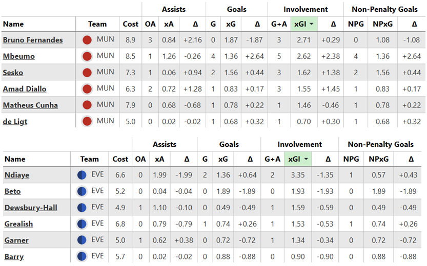 Over their last six Gameweeks, these are both sides’ best players for expected goal involvement (xGI):