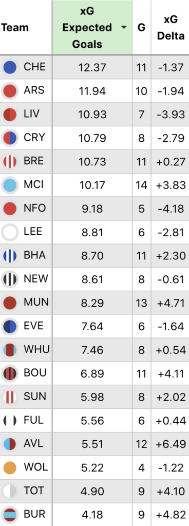 With the November international break pausing the action, it feels like an ideal time to explore the expected goals (xG) data from the last six matches.