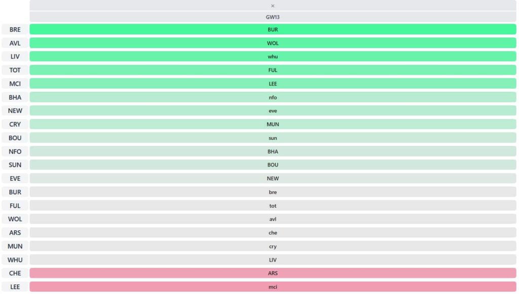 Gameweek 13 is arguably the standout week for deploying the Free Hit. Avoiding fixtures such as Arsenal v Chelsea and Crystal Palace v Manchester United will appeal to many managers. There is also scope to target more favourable matches, including Aston Villa v Wolves, West Ham v Liverpool, Manchester City v Leeds and Spurs v Fulham.