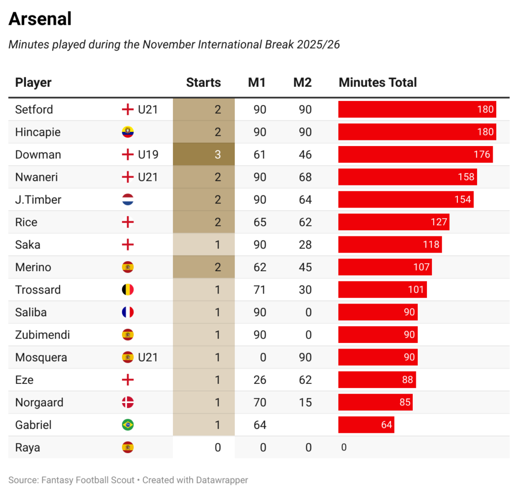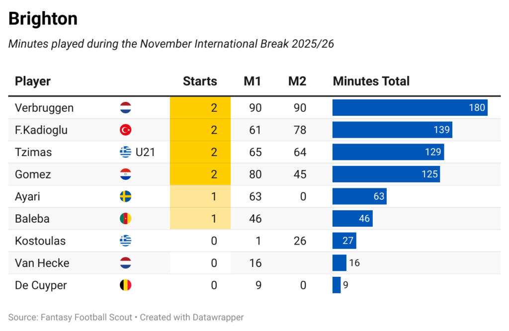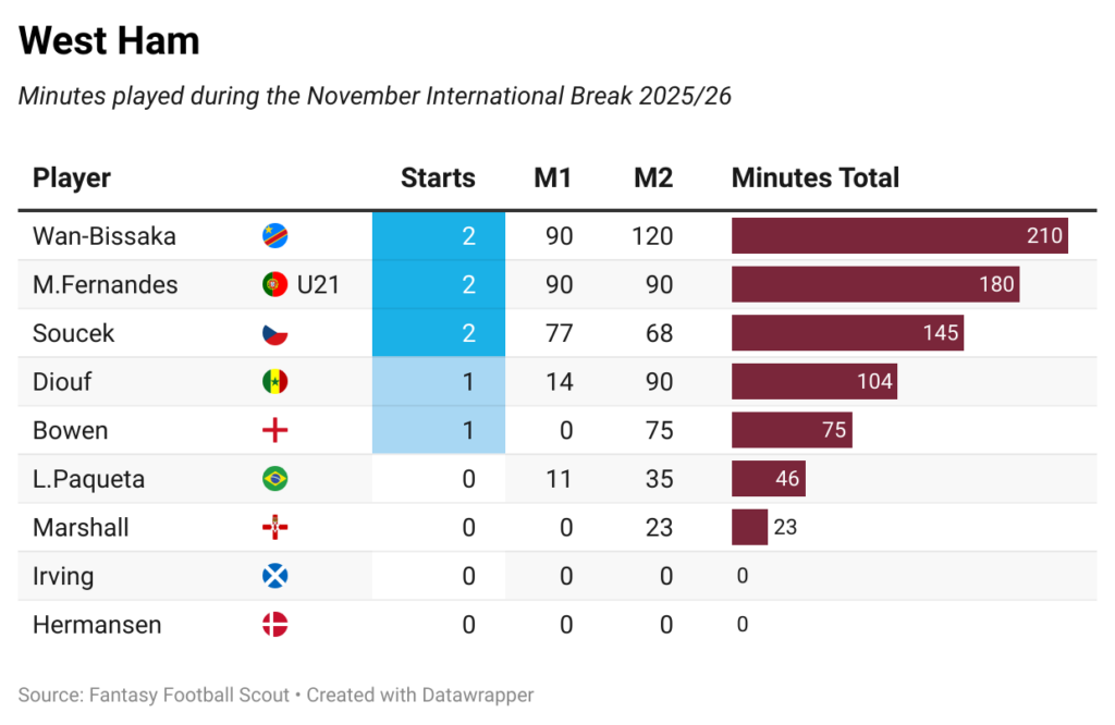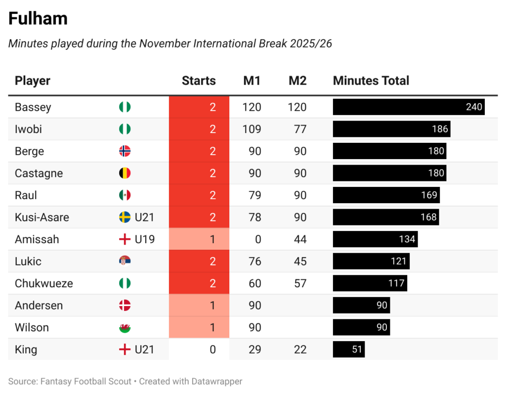 In this piece, we tot up how many minutes each FPL asset clocked up while on duty. Amassed game-time is sometimes a factor after an international break, especially with a busy winter period ahead of us.
