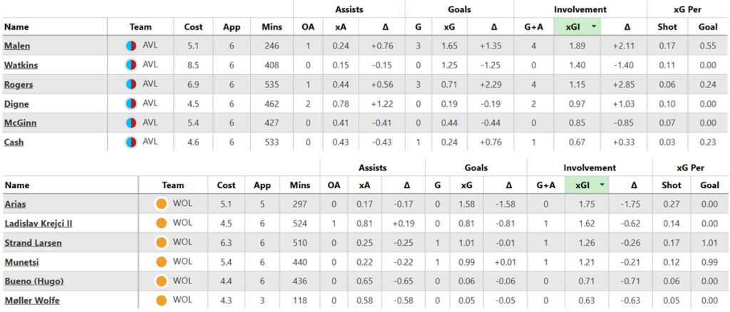 Over their last six Gameweeks, these are both sides’ best players for expected goal involvement (xGI):