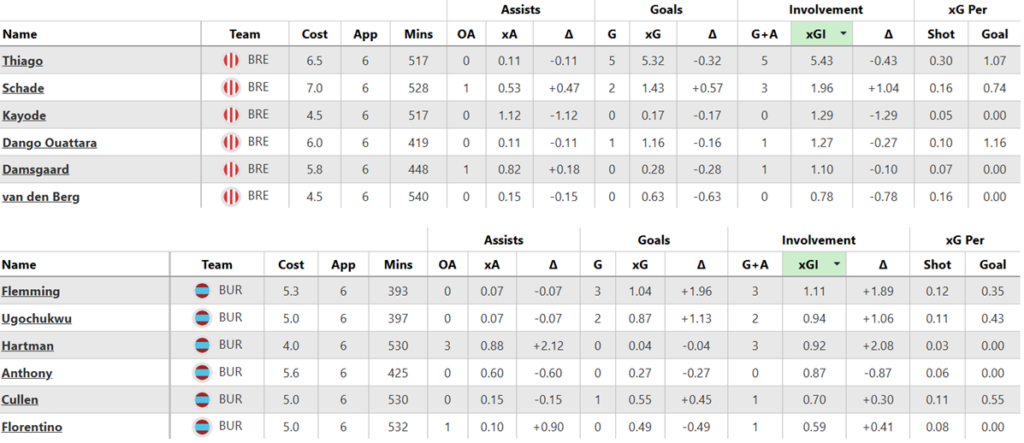 Over their last six Gameweeks, these are both sides’ best players for expected goal involvement (xGI):
