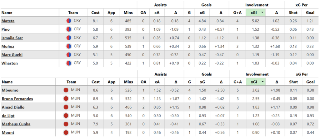 Over their last six Gameweeks, these are both sides’ best players for expected goal involvement (xGI):