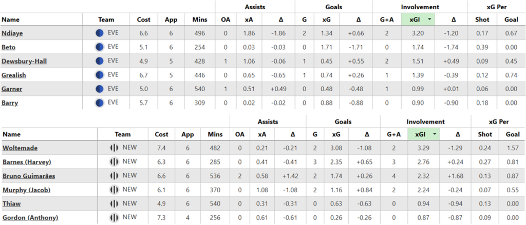 Over their last six Gameweeks, these are both sides’ best players for expected goal involvement (xGI):