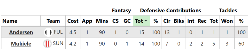 Joachim Andersen (£4.5m) and Nordi Mukiele (£4.2m) have now delivered DefCon points in 72.7% and 60% of their starts this season.