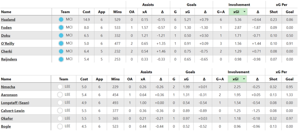 Over their last six Gameweeks, these are both sides’ best players for expected goal involvement (xGI):