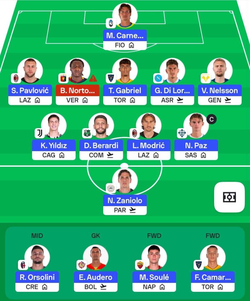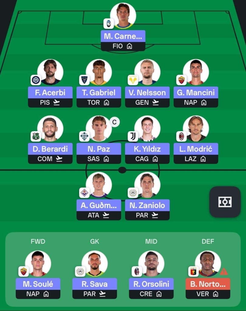• Captaincy for Gameweek 13 will begin with Nico Paz, followed by Nicolò Zaniolo, Kenan Yıldız, Pulisic, Tiago Gabriel, Marco Carnesecchi, Matías Soulé and Riccardo Orsolini.
