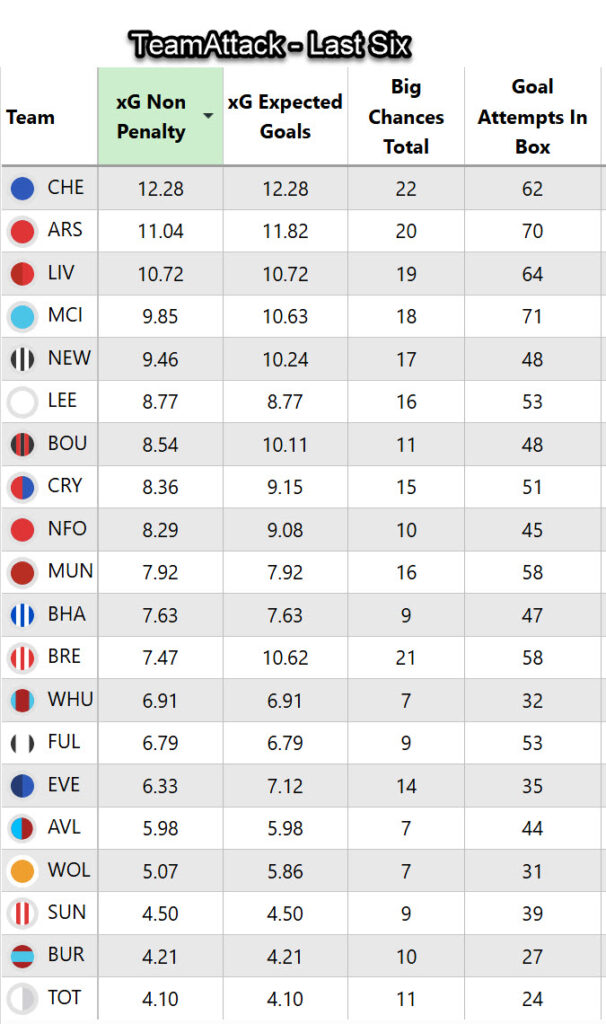 A: This is a tricky one. Liverpool have scored only six goals over the last six Gameweeks, but as the image below shows, they are third for expected goals (xG) over that period.