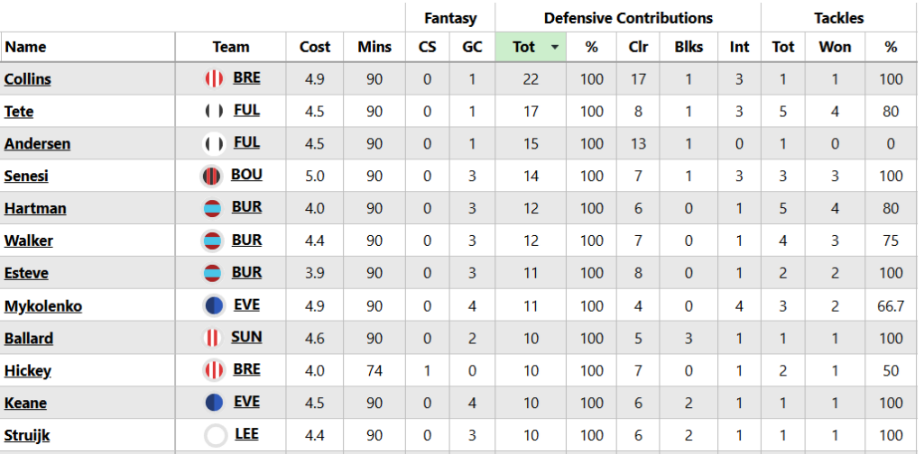 And, new for 2025/26, we’ll also round up Saturday’s defensive contribution (DC/DefCon) points.