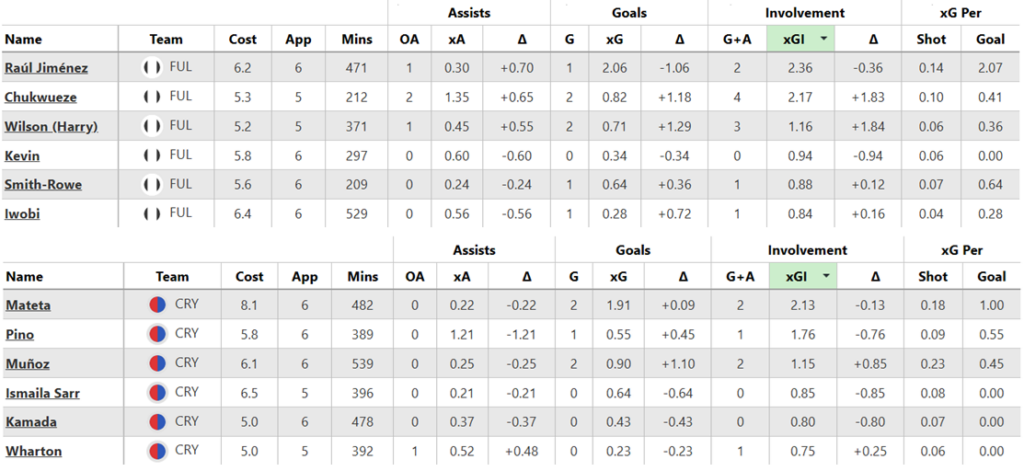 Over their last six Gameweeks, these are both sides’ best players for expected goal involvement (xGI):