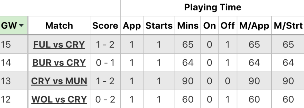 As Palace’s small squad continues to fight on multiple fronts, Mateta has now been subbed off early in three out of the last four Gameweeks: