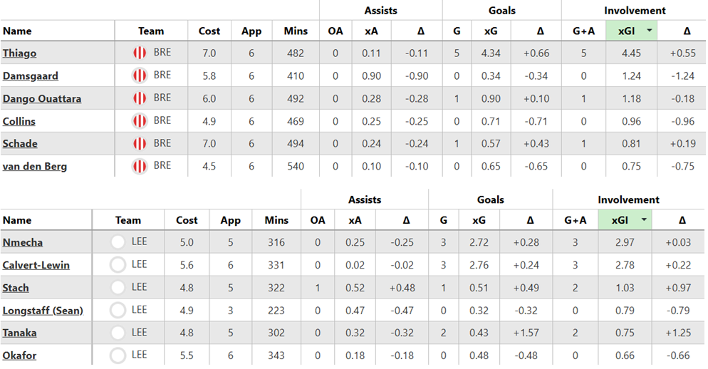 Over their last six Gameweeks, these are both sides’ best players for expected goal involvement (xGI):