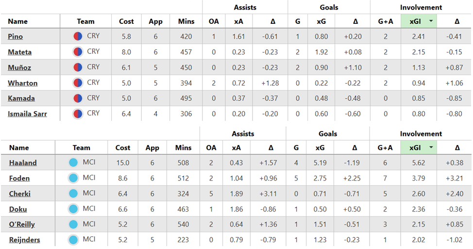 Over their last six Gameweeks, these are both sides’ best players for expected goal involvement (xGI):