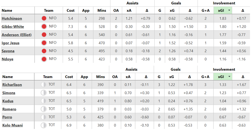 Over their last six Gameweeks, these are both sides’ best players for expected goal involvement (xGI):